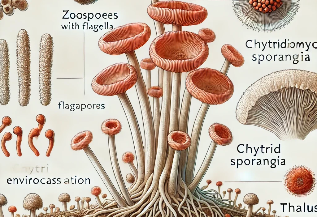 Chytridiomycota is a phylum of fungi that live mostly in aquatic environments and are usually microscopic in size.They play an important role in the decomposition of organic matter in aquatic environments, and some species can cause diseases in creatures such as amphibians.Unlike other fungal groups, they produce zoospores that have the ability to move, and thanks to these features, they spread in aquatic ecosystems.In this article, we will present comprehensive information about Chytridiomycota, from its scientific features to its habitat, from its effects on the ecosystem to its cultural importance.Scientific Name and Other Names This group, scientifically called the Chytridiomycota phylum, is among the oldest and primitive members of the fungal world.It is derived from the Greek word “chytridion”, meaning “small vessel”.This name is associated with the special structures carried by zoospores.Although it does not have a well-known name among the public, it can also be referred to as “chytrids” or “water molds” in scientific studies.While the Chytridiomycota phylum is involved in the decomposition of organic substances in nature, some species can also cause infections in amphibians.For example, the species Batrachochytrium dendrobatidis causes a serious disease in amphibians called chytridiomycosis.Areas of Occurrence and Physical Characteristics Chytridiomycota are widely distributed throughout the world and generally thrive in aquatic ecosystems, moist soils and environments rich in organic matter.Areas where water is concentrated, such as ponds, rivers, swamps and puddles, are the natural habitats of these fungi.They can also frequently be found on decaying plant material.Therefore, moist soils of forest areas, surroundings of aquatic plants and swamps are among the places where Chytridiomycota is frequently seen.When examined under the microscope, it is seen that Chytridiomycota can be in unicellular and multicellular forms.Some species have a branched mycelium structure;However, they mostly exhibit simple and microscopic structures.One of the most distinctive features of this group is that they produce flagellated spores called zoospores.These zoospores have the ability to swim in the aquatic environment, allowing them to germinate once they reach a suitable host or surface.These spore structures are resistant to environmental conditions, and these properties increase the ability of Chytridiomycota to spread and survive.Growth Habitat and Reproduction Mode Chytridiomycota lead a water-dependent life and mostly thrive in aquatic and moist environments rich in organic matter.These fungi feed on dead plant materials in areas where water is concentrated and play an important decomposer role in ecosystems by breaking down these materials.Decaying leaves, wood chips, and submerged organic debris are growth and breeding grounds for Chytridiomycota.Additionally, some species can live as parasites on animals and cause serious health problems, especially in amphibians.Reproduction of Chytridiomycota can occur by sexual and asexual means.During asexual reproduction, it forms zoospores within structures called zoosporangium.Zoospores can move in water thanks to their flagella and germinate by attaching to a suitable surface.Sexual reproduction occurs by the union of cells called gametes, and as a result of this process, thick-walled and durable structures are formed.Products of sexual reproduction are resistant to environmental challenges and can survive for long periods of time.These durable structures can re-germinate and form new mycelium when adverse conditions end.Season and Range of Chytridiomycota Chytridiomycota can be active in aquatic environments throughout the year;However, it can reproduce faster, especially in spring and autumn, when the water temperature is suitable. During the summer months, small water sources such as ponds and puddles may dry out;However, even during this period, they can survive thanks to their durable structure and become active again when water levels rise again.Especially in cool and humid environments, zoospores can spread over large areas through the movement of water.Therefore, the presence of Chytridiomycota may fluctuate in ecosystems depending on seasonal changes.Chytridiomycota and Their Effects on the Ecosystem Chytridiomycota plays an important decomposer role in ecosystems and is involved in the breakdown of organic substances.These fungi contribute to the nutrient cycle by accelerating the decomposition of dead plant materials in aquatic ecosystems.This process is important to preserve the biodiversity of aquatic environments and improve water quality.The effect of Chytridiomycota on aquatic plants is generally through the breakdown of decaying materials.However, some Chytridiomycota species can also act as parasites and cause diseases, especially in amphibians.The species Batrachochytrium dendrobatidis is recognized as a pathogen that threatens amphibian populations globally and causes a fatal disease called chytridiomycosis.This disease infects the skin cells of amphibians, disrupting skin permeability and disrupting water and electrolyte balance, which can lead to death.This situation poses a significant threat to biodiversity.Interesting Facts About Chytridiomycota