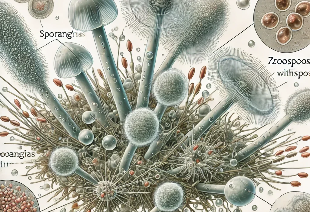 Oomycota is a group of microorganisms popularly known as “pseudofungi”.Although they look similar to mushrooms, they are biologically quite different from them.Oomycota are commonly found in aquatic environments or moist soils and are known to be serious pathogens of many plant species.They can cause various agricultural diseases such as potato mildew and fruit rot.In this article, we will present comprehensive information about Oomycota, from its scientific features to its habitat, from its effects on the ecosystem to its cultural importance.Scientific Name and Other Names This group, whose scientific name is Oomycota, is a member of the Protista kingdom and has a separate place from fungi in biological classification.Oomycota, commonly referred to as “water molds”, are not actually true fungi and that is why they are known as “pseudofungi”.This name comes from the fact that although they have similar characteristics to mushrooms, they have a different evolutionary origin.Some of the best-known species of Oomycota are Phytophthora infestans (the species that causes potato downy mildew) and Pythium.Regions Where They Occur and Their Physical Characteristics Oomycota are organisms that are widespread throughout the world and thrive in water-dependent or humid environments.They are frequently seen in aquatic ecosystems, ponds, streams and wetlands.In addition, moist soils and water-saturated grounds are breeding and spreading areas for these organisms.Oomycota can infect plant roots, leaves and stems, causing significant economic losses in agricultural areas.When examined under the microscope, the mycelial structure of Oomycota appears to be tubular and unsegmented.Their mycelia form a branched structure similar to mushrooms;However, their cell walls consist of cellulose and do not contain chitin, which is one of the main differences that distinguish them from true fungi.Oomycota produce flagellated spores called zoospores that are capable of locomotion.These zoospores can spread by swimming in the aquatic environment and thanks to this feature, they can quickly colonize aquatic environments.Thanks to their sports, they have the potential to spread over large areas under suitable conditions.Growth Habitat and Reproduction Mode Oomycota are organisms that prefer to grow in aquatic and moist environments.They can develop quickly in water-saturated soils, especially during the rainy season.Irrigation systems and heavy rainfall in agricultural areas facilitate the spread of these fungus-like organisms.They can develop in the root areas of plants and in water bodies and damage the root system of plants.Therefore, the spread of Oomycota-borne diseases may become a serious problem in agricultural production areas.Reproduction of Oomycota can be both sexual and asexual.During asexual reproduction, they form motile spores called zoospores.Zoospores spread by swimming in the aquatic environment and cause infection when they reach a suitable host.Sexual reproduction occurs through the union of structures called oogonium (female reproductive organ) and antheridium (male reproductive organ), and resistant oospores are formed in this process.Oospores are resistant to adverse environmental conditions and can germinate and form new mycelial structures when suitable conditions are provided.These modes of reproduction increase the ability of Oomycota to adapt to environmental changes.Season and Distribution Period of Oomycota Oomycota generally become more active in spring and autumn, when precipitation and humidity increase.During these periods, rainwater and floodwater facilitate the transport of spores, increasing the rate of spread.In agricultural areas, accumulation of water in the soil after heavy rains may pave the way for the spread of Oomycota infections. In summer months, growth rates may decrease as water evaporates and temperatures increase.It is of great importance to control diseases caused by Oomycota, especially in potatoes, tomatoes and other water-sensitive plants.Oomycota and Their Effects on Plants Oomycota are known as serious pathogens in plants and can cause great damage to agricultural production.One of the best-known Oomycota species, Phytophthora infestans, causes potato downy mildew, which caused major famines in Ireland in the 19th century.These and similar species can cause crop loss by causing rot on the roots of plants, lesions on the leaves and rot on the fruits.Oomycota infections usually manifest with the following symptoms: