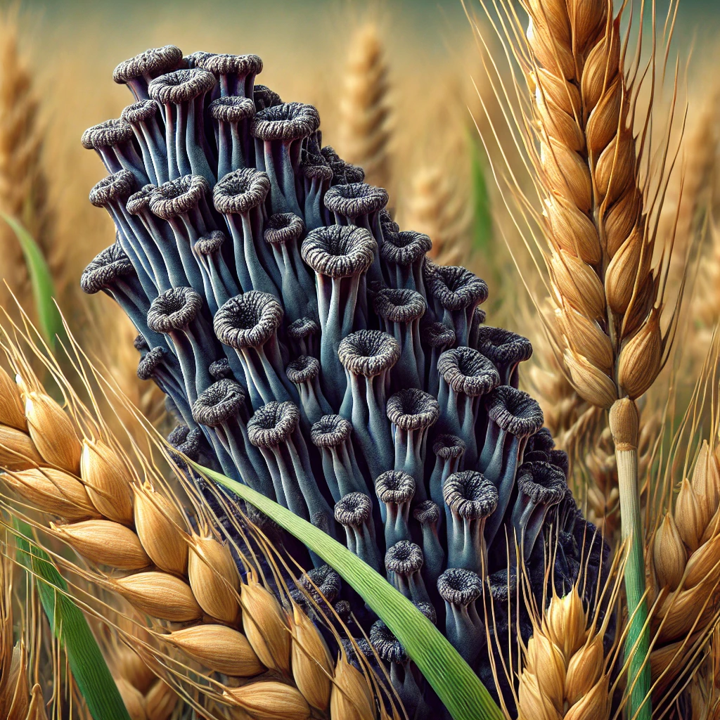 - Fungal Spores: The fungus uses the flowers of the grains it infects to spread its spores.Through wind and insects, spores spread to the environment and can infect new plants.