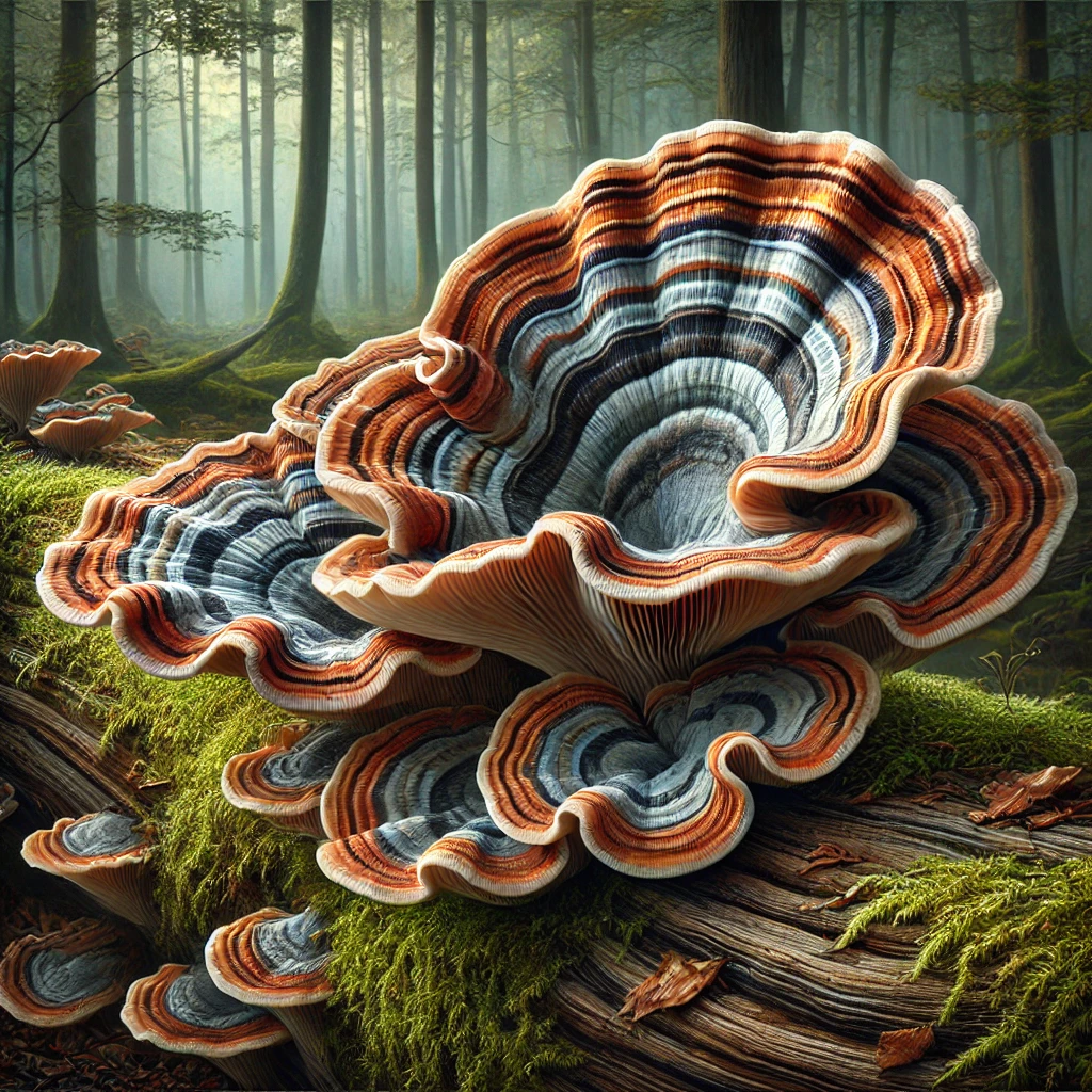 Turkey Tail Mushroom, scientifically known as Trametes versicolor, is one of nature’s most colorful and beneficial mushroom species.This mushroom is found in forest areas in many parts of the world, including Asia and Europe.It is frequently preferred in traditional medicine and modern health practices due to its many health benefits.In this article, we will discuss the characteristics, growing conditions, cultural importance and health benefits of Trametes versicolor in detail.Scientific Name and Other Names Trametes versicolor is the scientific name of the mushroom.The genus name “Trametes” means “fine” or “delicate”, while the word “versicolor” means “very colorful”.The mushroom gets its name from the various color layers on it.The name Turkey Tail Mushroom comes from the multicolored and wavy patterns of the mushroom’s appearance, which resemble a turkey’s tail.While it is known as “Turkey Tail” in English, it is known by names such as “Yun Zhi” and “Kawaratake” in Asia.These names indicate that the cultural and medicinal uses of the mushroom have a long history.Regions Where Turkey Tail Mushroom Occurs Turkey Tail Mushroom is common almost everywhere in the world, especially in forest areas with temperate climates.It is found in a wide geography such as North America, Europe, Asia and Australia.It can be commonly seen in forested areas in the Black Sea, Marmara and Mediterranean regions of Turkey.The fungus grows on the trunks and branches of dead or decaying deciduous trees, contributing to the decay process of the trees.Physical Characteristics and Identification The characteristic physical features of Trametes versicolor enable it to be easily recognized in nature.The multi-layered and wavy structure of the mushroom gives it a unique appearance.